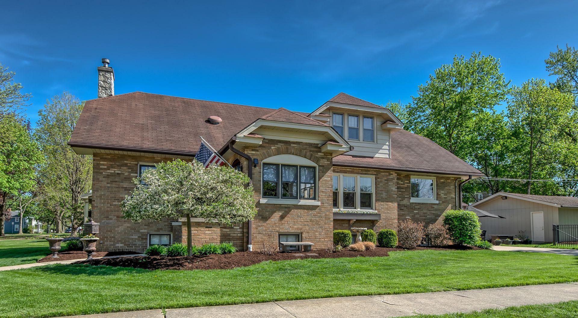 Historic Charm Meets Modern Comfort - Must-See Chicago Brick Bungalow This stunning, large Chicago-style brick bungalow is a true diamond in the rough - thoughtfully renovated and updated for modern living while beautifully preserving its timeless vintage character. Located in the historic district of downtown West Chicago, it offers unbeatable convenience with just a 5-minute walk to the train. Inside, you'll enjoy beautifully refinished original hardwood floors alongside tastefully added new flooring. The home features two and a half fully renovated bathrooms, all with elegant marble finishes. The gourmet kitchen is a standout, boasting a large marble island, two full-size ovens, exquisite copper fixtures, and premium paneled appliances including a Bosch dishwasher and range. Outside, the professionally landscaped yard includes an inground sprinkler system, a newer large concrete driveway, privacy fence, stamped concrete patio, and 3 garage spaces (one attached + two separate). Downstairs awaits a generous, full unfinished basement complete with a Pittsburgh bathroom, offering endless potential for customization or future expansion. Nothing else like it in town. This one-of-a-kind home is a must-see!