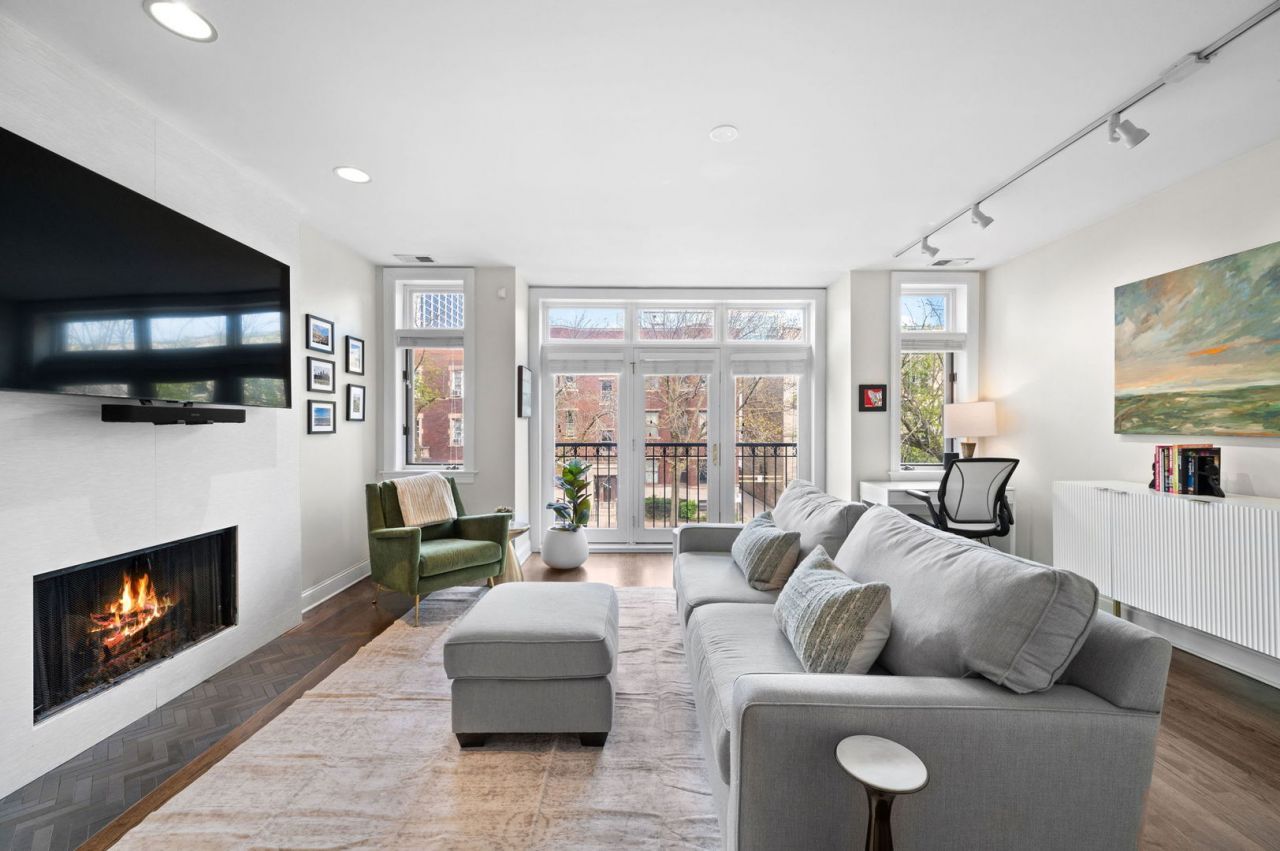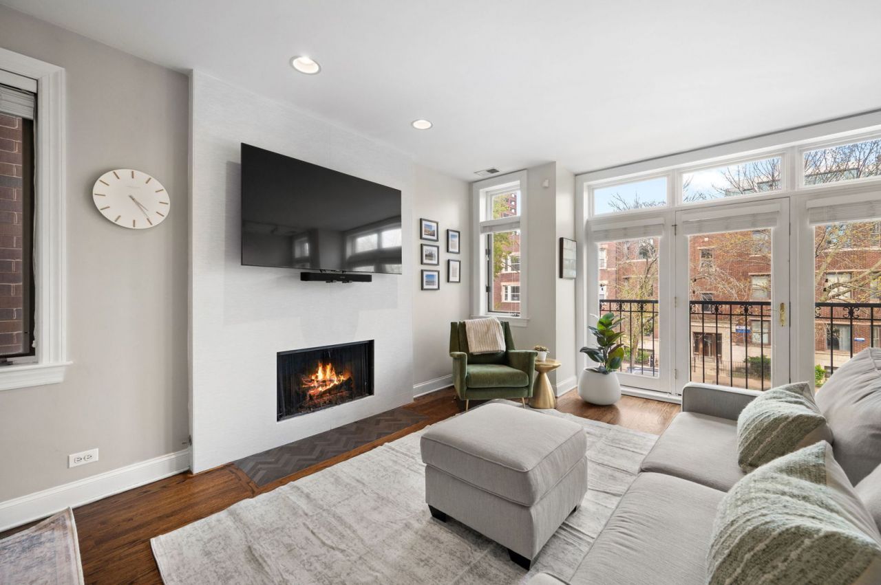 Set on a picturesque, tree-lined street in a premier Lakeview location, this beautifully updated 2BR/2BA home offers approximately 1,300 square feet of bright, well-proportioned living space. Built in 2001, this home features an expansive living room with floor-to-ceiling windows and a Juliet balcony, anchored by a gas fireplace. Hardwood floors run throughout, adding warmth and continuity. The kitchen was recently updated and is well-appointed with quartz countertops, updated stainless steel appliances, and ample cabinetry, and bar seating, providing excellent functionality for both everyday living and entertaining. The generously sized primary suite perfectly accommodates a king size bedroom set, a sitting area, and includes a walk-in closet. This en suite primary bathroom is unlike anything else on the market--updated in 2025 with a floating double vanity, spa-inspired bath walk-in shower, additional cabinetry for storage, and stool with bidet! Just off the primary suite is the tranquil private balcony large enough for seating and grilling. Additional highlights include in-unit laundry, an assigned exterior parking space with EV charger, and low monthly HOA dues just under $300. Unbeatable location with easy walking distance to CTA Addison or Sheridan Red Lines and multiple bus lines, the Lakefront Trail, Belmont Harbor, and Gil Park. Other neighborhood amenities include multiple gyms (UFC, Quads, 9 Round, Orange Theory, Planet Fitness), and grocery stores like Whole Foods and Jewel. Endless vibrant dining options surround this home, along with unforgettable nightlife in Wrigleyville, North Halsted, Southport Corridor, and East Lakeview!
